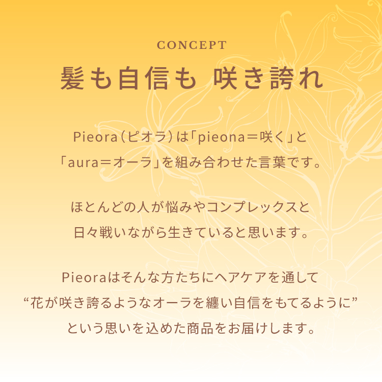 髪も自信も 咲き誇れPieora(ピオラ)は「pieona=咲く」と