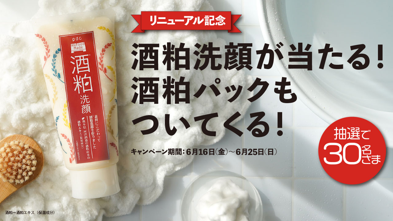 2023年6月16日(金) リニューアル記念!酒粕エキスが2倍※1になった酒粕洗顔をプレゼント!
